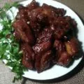 Свиные ребра,сладкий перец,лук, пивной соус. В стоимость блюда уже включена сумма в 30 руб. за контейнер для доставки